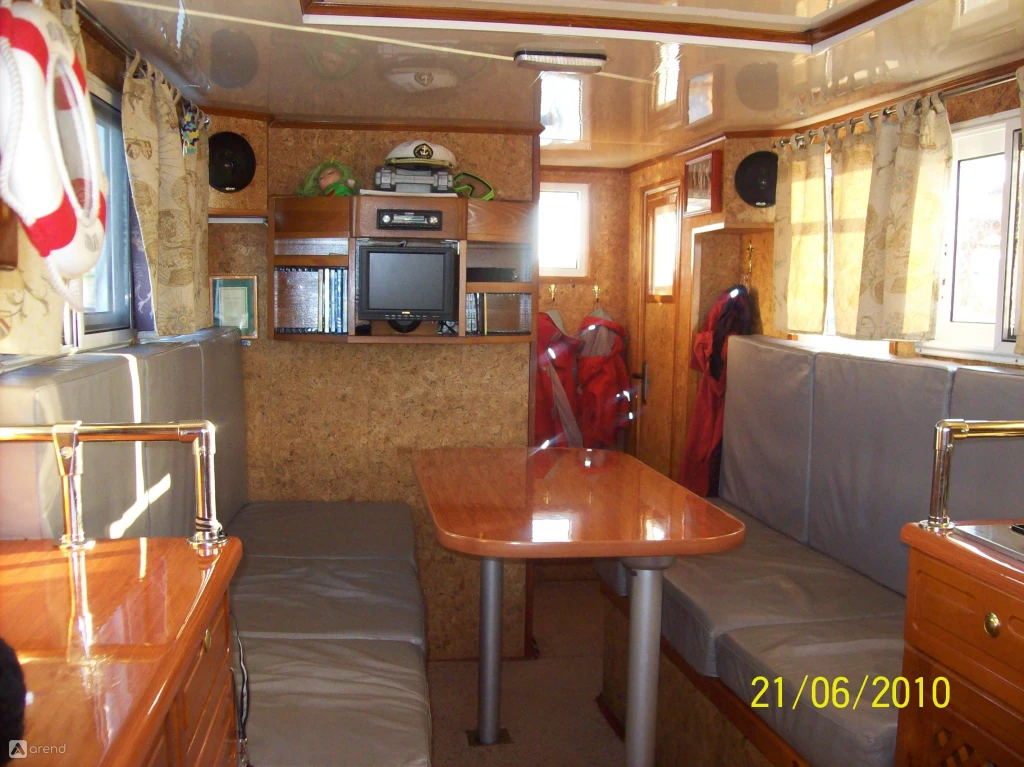Уютная кают-компания, газовая плита, холодильник, посуда, элитные фужеры Zepter, вода холодная горячая, туалет, запас питьевой воды, тёплые пледы, отопление, качественная музыка.