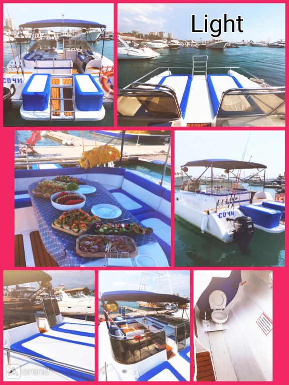 Комфортабельный катамаран. Для семейных и групповых прогулок по прибрежной территории Сочи.